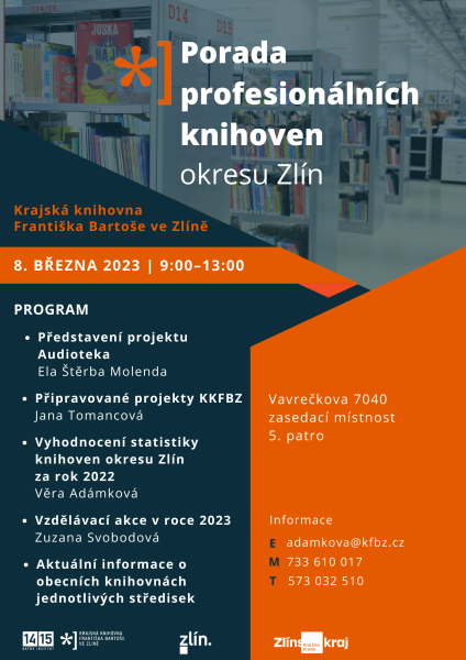 Porada profesionálních knihovníků okresu Zlín - středa 8. března 2023, Krajská knihovna Františka Bartoše ve Zlíně