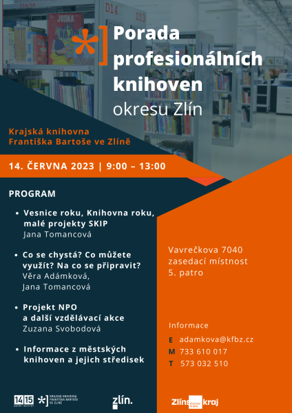 Porada profesionálních knihovníků okresu Zlín - středa 14. června 2023, Krajská knihovna Františka Bartoše ve Zlíně