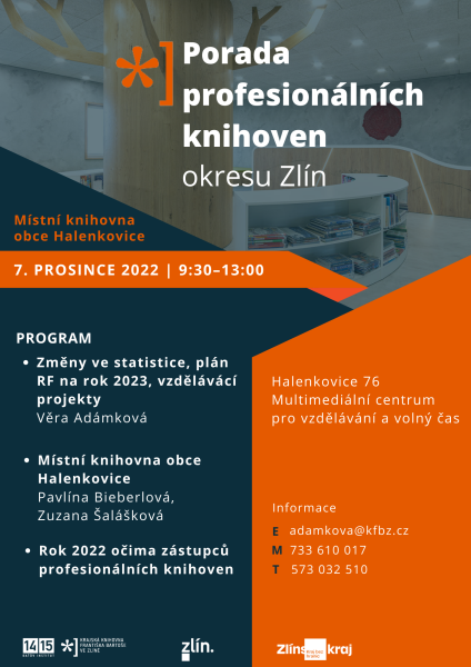 Porada profesionálních knihovníků okresu Zlín - středa 8. března 2023, Krajská knihovna Františka Bartoše ve Zlíně